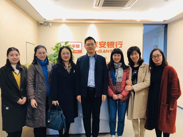 下午,王晓军书记一行来到平安银行股份有限公司宁波分行,平安银行宁波分行风险管理部总经理、我院05级校友周华金对学院一行的到访表示热烈欢迎。宁波校友分会会长、02级校友钟钏,宁波校友分会理事、06级校友乐冬妍参与座谈。学院党委书记王晓军介绍了学院近年来的快速发展情况,并代表学院送上问候和关心,希望校友们常回学院看看,代表学院向校友们送上问候。校友们一一介绍了目前自身的工作情况、回顾了母校难忘的求学时光和毕业后的奋斗故事,他们感谢各位老师的特意看望,表示定不负母校培养。