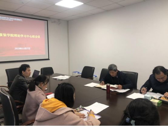 11月27日下午,服装学院召开理论学习中心组会议,就扎实推进“不忘初心、牢记使命”主题教育的相关问题作了进一步汇报和讨论,并集中学习了党的十九届四中全会精神会议。学院领导班子成员、三办主任和各党支部书记参加了会议,学院党委书记朱小行主持并做主题发言。