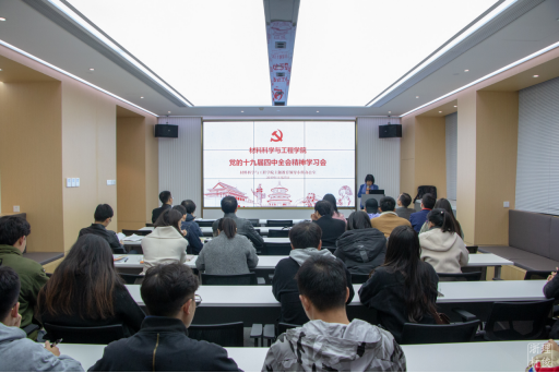 11月27日下午,材料科学与工程学院在24号楼报告厅召开了党的十九届四中全会精神学习会暨主题教育推进会。学院党政领导班子,学院理论学习中心组成员,各支部书记、副书记及支部委员参加了本次会议。
