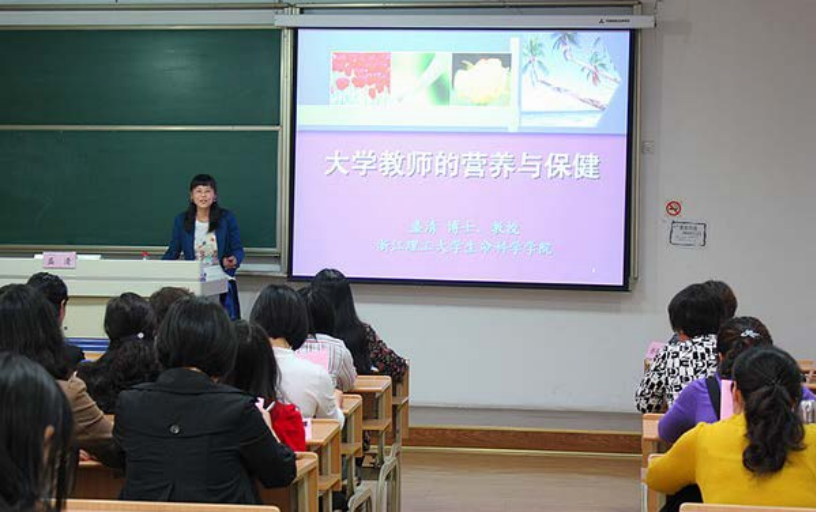 一直以来,我校生命科学与医药学院努力参与浙江省营养事业的相关工作, 助推健康浙江建设。早在2013年,盛清教授就为我校教职员工举行“大学教师 的营养与保健”讲座,指导大家合理营养,平衡膳食,选择健康。2016-2017 年,我校为杭州经济技术开发区“蓝领成才”职工素质教育工程免费举办了数期“现代养生与自我保健研修班”、“家庭营养与健康”培训班等。