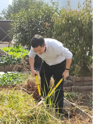 “能量花园”项目由学院分工会主席主持建设,除了满足师生们观赏休息、采摘蔬菜的乐趣之外,更是培养生态设计人才的实战课堂,是我校网红景点之一。目前,因前期天气、环境原因,“能量花园”需要修缮、维护。学院行政办党支部的成员看在眼里、干在实处,平时经常性地开展整理维护工作。当天更是发起“大家一起干,热火朝天干”的义举。支部成员表示,在中午工作的过程中也感受到“能量花园”为自身注入的满满的幸福感和成就感,并主动提出要将这一服务进行长期深化和拓展,建立长效的支部志愿服务制度。
