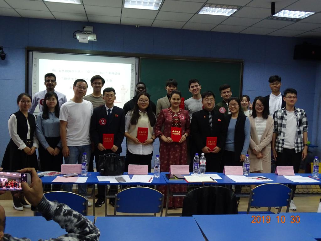 10月30日,由tyc33455cc太阳集团成网官方入口国际教育学院主办,史量才新闻与传播学院承办的浙江省外国留学生第十三届“梦行浙江”汉语演讲比赛校内选拔赛在2S339举行。适逢今年是新中国成立70周年,因此本次演讲比赛以“融情中华,热爱中国”为主题。来自6个学院的11名外国留学生报名参加了本次比赛,国际教育学院俞洁、沈嘉维和史量才新闻与传播学院方平、马春燕、刘哲五位老师担任评委。