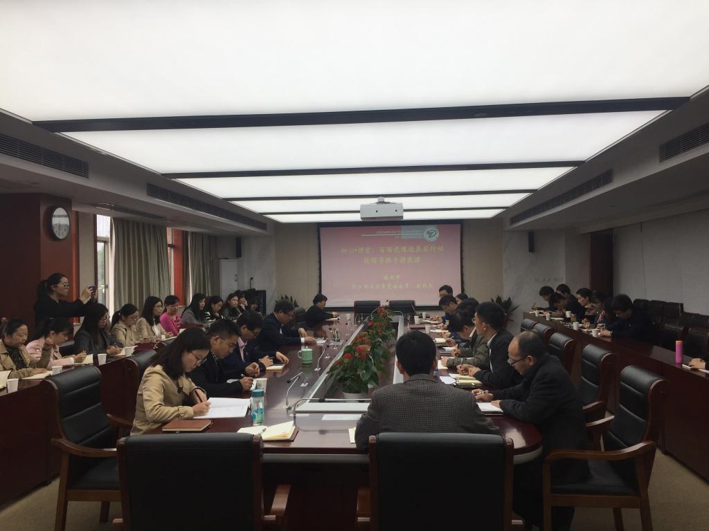 为了更好地贯彻党的十九大精神,进一步推进“不忘初心、牢记使命”主题教育深入开展,10月28日上午,陈文华副校长在行政楼215会议室,讲授了《不忘初心敢担当 牢记使命有作为》的主题党课,科学技术研究院党支部、研究生院、党委研究生工作部党支部、计划财务处党支部全体党员参加了党课活动。
