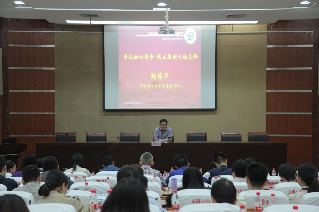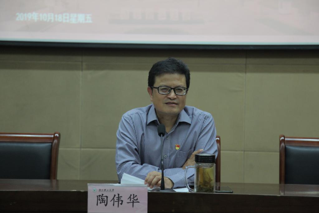 10月18日上午,校党委副书记陶伟华以《牢记初心使命 做立德树人的先锋》为题,从开展全党主题教育的重大意义及内涵、主题教育对大学的时代意义、如何高质量开展主题教育做立德树人的先锋三个方面,为学生思想政治工作相关部门成员和全体专兼职辅导员讲授了专题党课。