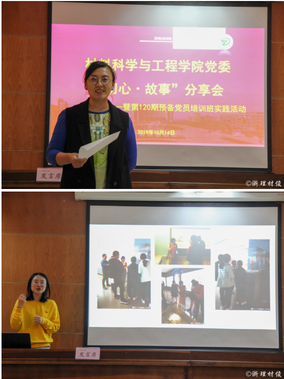分享会上,各支部党员代表结合个人经历和理解,分享了自己“初心•故事”,积极诠释自己作为一名党员的初心与使命。本科生党员代表从小事做起,积极投身科研,参加志愿服务,参与支教工作,发挥党员先锋模范的作用,这种勇于承担责任、不求回报、自立自强的精神,值得传承和发扬。研究生党员代表通过讲述自己祖辈的故事,他们为实现更大的价值而放弃更优越的条件,充分体现了老一辈党员的初心和情怀,也时刻影响着我们这代年轻的党员。博士研究生党员代表从重温《建国大业》感慨和感受革命事业的艰苦与严酷,通过对比新中国成立后的70周年,看到了中国人民真正站了起来,国家也变得更加强大了,但革命尚未成功,我们必须不忘初心,牢记使命,开创更加辉煌的明天。高分子材料系教工支部代表张明老师讲述自己争做人民好老师的初心,她从孩童时的游戏中做老师,到小学代课,再到如今的优秀人民教师、优秀共产党员,她始终不忘教育初心,一步一步实现自己的教师梦。