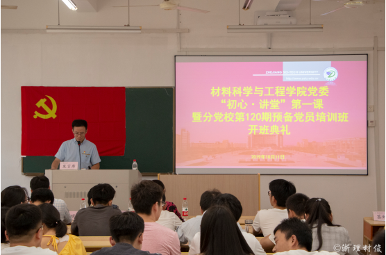 10月11日下午,材料科学与工程学院在2-S215教室举办了材料科学与工程学院“初心·讲堂”第一课暨党校第120期预备党员培训班开班仪式。“初心·讲堂”第一课由学院党委委员周照东老师主持,学校“不忘初心、牢记使命”主题教育巡回督查组组长、校工会主席严丹萍老师、学院党委书记傅雅琴教授、学院副院长张先明教授出席,学院高分子系教工党支部、博士生第一党支部全体党员以及2019年新发展预备党员参加本次党课。