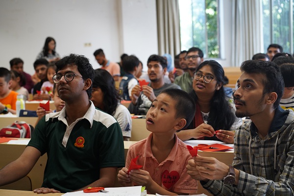 活动共分传统文化课堂教学、参观丝绸博物馆、传统文化知识竞赛、传统文化影视欣赏四部分。在传统文化课堂上,孩子们与外国留学生结对,开展了读写教学,传统中国剪纸的教学体验活动。参观丝绸博物馆时,孩子们则亲身体验了传统技艺蓝染。传统文化竞赛的诗词竞猜与飞花令活动,针对孩子们的高低年级,分为高年级组和低年级组,他们在活动中快乐学习了传统诗词的独特魅力。