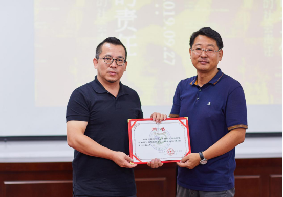 9月27日上午,中国版协装帧艺术委员会常务委员、深圳市平面设计协会秘书长、原著名艺术家韩湛宁先生受副院长周景崇教授邀请,赴学院讲座。院长朱旭光教授出席并为韩先生颁发兼职教授聘书,副院长周景崇、院长助理刘杨、数字媒体系、视觉传达系共150余位本研学生、教师共同聆听韩先生讲座,讲座围绕“设计、责任”展开,韩先生旁征博引,既有历史传承,又包涵艺术深情,他声情并茂,妙语连珠,现场欢声笑语,时时博得阵阵掌声,大家沉浸在艺术思考、设计展望、设计初心、设计师的责任担当之中,充满正能量。