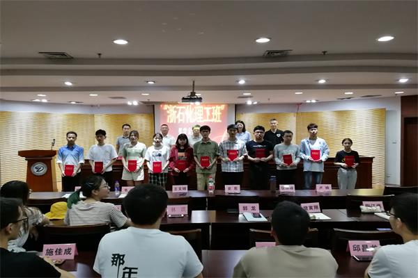 浙江石油化工有限公司是一家由民营控股、国企参股的混合所有制企业,是中国(浙江)自由贸易试验区打造油品全产业链,落实“三基地一中心”发展战略的重要依托工程,肩负着推动区域经济发展、优化全国石化产业布局的职责和使命。我校理学院与与浙江石油化工有限公司在今年三月份签订校企合作人才培养项目——“浙石化理工班”合作协议,并在理学院建立“浙江石油化工有限公司人才培养基地”,项目旨在进一步深化校企合作,积极构建产教融合育人模式。