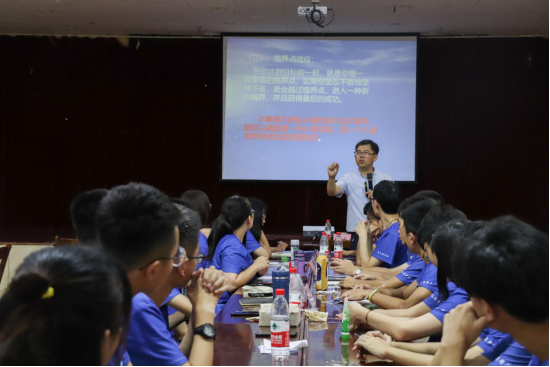在培训的末尾,方水明以“选择学生干部,赢在起跑线”为主题给各位学生干部上了一课。他从在座同学的暑假计划聊起,分享了自己的暑假生活、过往的学生工作经历与荣誉。他与学生干部们一起探讨学生干部是什么,需要那些意识。与此同时告诫学生干部们应该在团队中找准自己的定位端正态度,锻炼时间管理与协调能力,让在座各位学生干部深有感触。