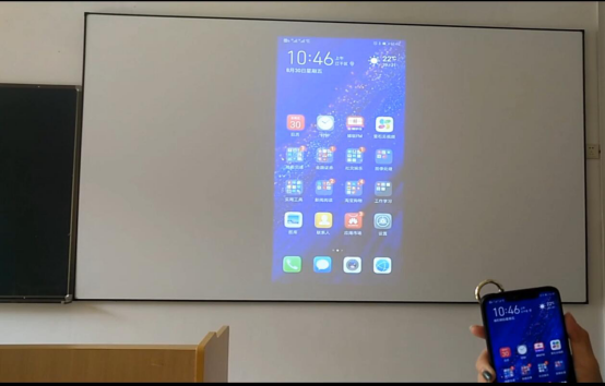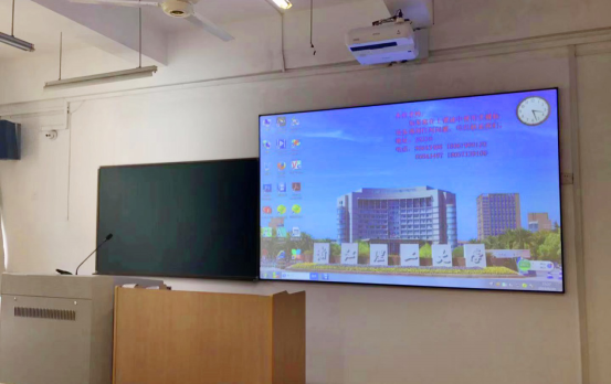 此次升级改造工程更新了20个教室的激光短焦投影机,投影亮度更大,避免了老师上课时受投影亮光刺激和干扰的弊端;同时这些教室新增了一键手机投屏功能,便于师生教学分享,开展互动式教学。改造后的多媒体教室改善了扩音效果、提升了课堂教学投影的清晰度、加强了仪器设备的兼容性,实现了多媒体教学设施的一键操作。