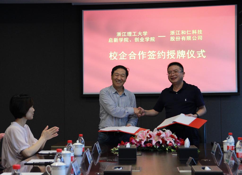 7月3日下午,启新学院、创业学院与浙江和仁科技股份有限公司“校企合作”签约授牌仪式在浙江和仁科技股份有限公司举行。启新学院、创业学院院长汪亚明、副院长陈雷、党委副书记王吴芳、浙江和仁科技股份有限公司联合创始人、高级副总裁傅烈勇、CTO赵晨晖、人力资源中心总经理王纪军等出席签约仪式,启新学院、创业学院教师代表、学生代表、和仁科技股份有限公司员工代表参加签约仪式。