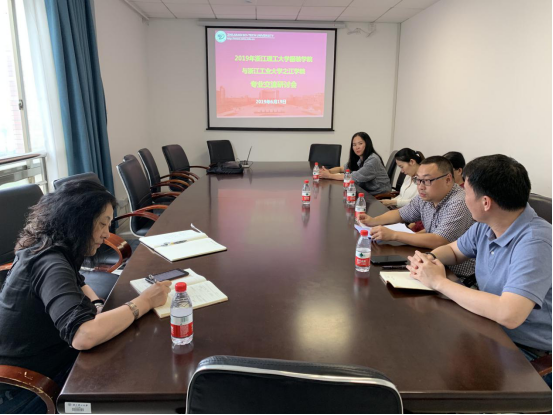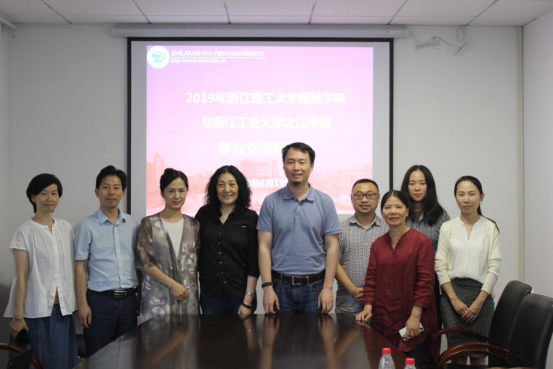 座谈会上,胡迅代表学院对夏颖翀一行来学院调研表示热烈欢迎,并表示此次是一个很好的交流学习的机会,随后她简单介绍了服装学院的基本情况已经服装与服饰设计专业建设的基本情况。夏颖翀简单介绍了浙江工业大学之江学院设计学院今年新申报下来的服装与服饰设计专业,随后由教学副院长详细介绍了新专业的培养方案及课程设置。胡迅就浙江工业大学之江学院设计学院的地域特色,提出了几点培养方案上调整建议,希望能将柯桥这样有产业特色的地方经济融入到课程设置里面,转换成自己的专业特点与特色。