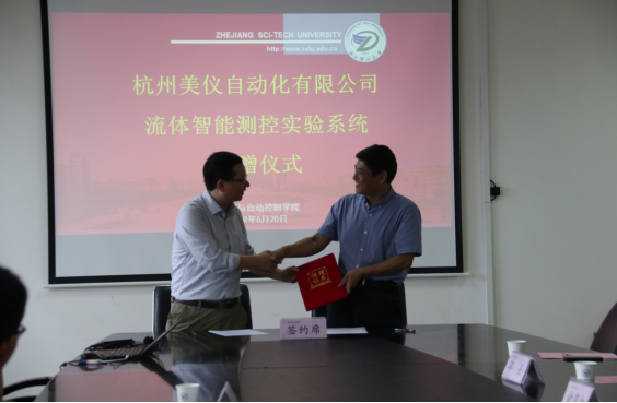 6月20日下午,机控学院在15号楼322会议室举办“流体控制实验系统”捐赠仪式。杭州美仪自动化有限公司向机控学院捐赠流体控制实验系统。学院院长陈本永,学院党委书记潘海鹏、副书记苏丽辉等党政领导,杭州美仪自动化有限公司董事长丁程以及其员工代表,机控学院师生代表等参加会议。