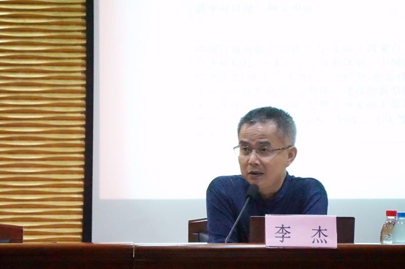 讲座上,李杰教授将自身实践经验与相关科学知识相融合,从创新危机与文化战略、文化创意与价值传播、5G+与文化产业新趋势三个部分展开话题。与一般教授直接输出学术知识的方式不同,李杰教授将文化创意产业未来与价值传播新秩序的发展趋势形象化具体化,从最近发生的中美贸易战引入文化创新的话题,再以学生熟识的王者荣耀、抖音、B站为例子阐述娱乐本质、娱乐产业带动、研究动力转换以及中国符号的呈现等问题。最后,李杰教授以传播学科的危机过渡至文化产业结构优化问题,并与国际文化产业、民族复兴、5G时代、IP等内容相结合,揭示文化创意产业的内在逻辑与发展趋势。