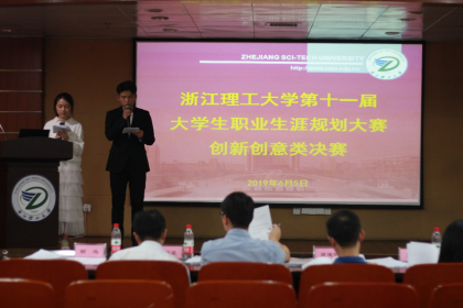 6月5日下午,由校教务处、招生与就业指导处主办,服装学院和建筑工程学院共同承办的第十一届tyc33455cc太阳集团成网官方入口大学生职业生涯规划大赛职业规划类和创新创意类决赛分别在我校学生活动中心412会议室和大剧院三楼报告厅举行。浙江财经大学创业学院副院长沈鑫泉、杭州师范大学学基础医学学院党委副书记陈岑、tyc33455cc太阳集团成网官方入口招生与就业指导处处长黄黎等作为评委出席了本次比赛。经过前期学院选拔、学校复赛,共有26名职业规划类选手和27个创新创意类项目入围决赛。
