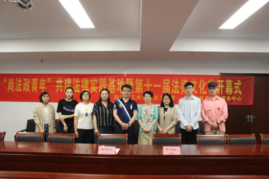 近日,法政学院与杭州市上城区司法局、尚法教育服务中心合作开展了“‘尚法政青年’共建法律实践基地暨第十一届法律文化节开幕式”活动。学院党委副书记章迪薇,上城区司法局普法与依法治理科科长陈晓璐、尚法教育服务中心理事长郑关军律师、秘书处吴卫珠律师、学院易法工作室指导老师蒋钰婧等出席会议。