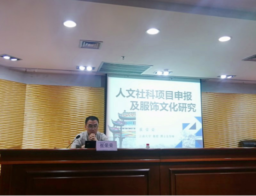 首先崔荣荣教授以江南大学为例,对不同级别的科研项目如何申报分门别类地进行了经验总结和详细阐释,深入分析了各类项目及成果申报过程中应该注意的问题。崔教授指出人文社科项目研究应该持有“厚积薄发”、“贵在坚持”的精神,鼓励老师们培养科研兴趣、选择一个领域精耕细作、努力取得标志性成果。然后,崔教授从自己的研究领域出发,结合自身科研经验对民族服装设计的发展与趋势进行了深入解读。他指出复兴民族服饰并不是一味从古,而是要以史为鉴,将传统文化和设计创新结合在一起,要具有国际视野,在新的时代背景下赋予传统服饰新的生命力。最后,崔教授介绍了《服装学报》(原《江南大学学报自然科学版》)的发展历程及期刊特点,并与我校教师进行了深入交流,共同探讨文化、艺术等产业的发展需求。