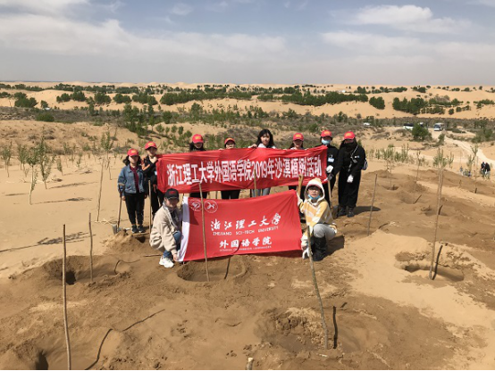 为纪念五四运动100周年,献礼中华人民共和国成立70周年,4月28日-5月3日,外国语学院师生组成了10人的沙漠绿化志愿服务队,赴内蒙古自治区鄂尔多斯市恩格贝沙漠参加植树活动,用自己的实际行动为沙漠绿化和建设美丽中国贡献力量。