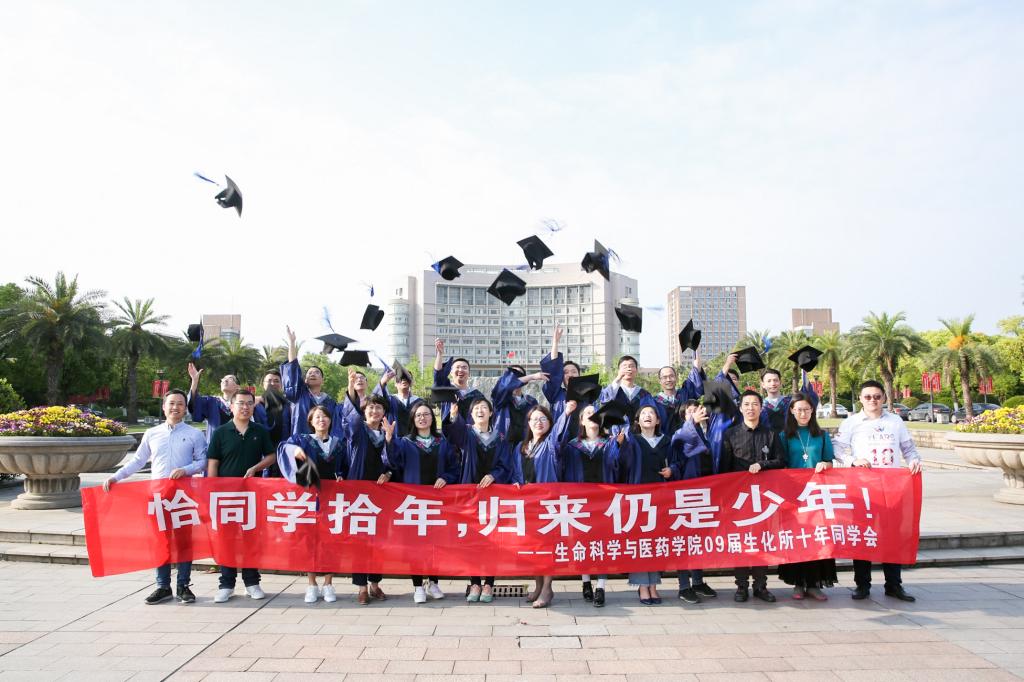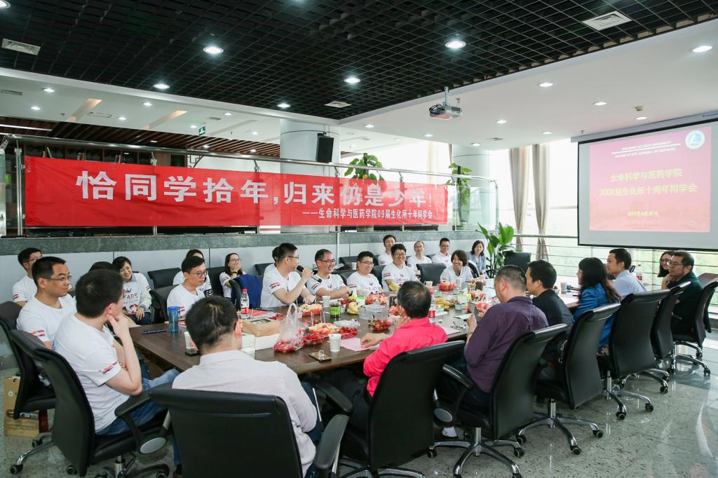 在这春意盎然、生机勃勃的季节里,时值生命科学与医药学院建院15周年,4月20日,学院2009届生化所研究生带着对母校眷恋之情、对师长感恩之心重返校园,相聚在tyc33455cc太阳集团成网官方入口校友之家,开展十周年同学会活动。教务处处长盛清,学院党委副书记、纪委书记陈礼桢,学院党委委员、生物制药系主任、2009届生化所研究生班主任吕正兵,学工办主任、校友服务中心主任赵虎,教师代表张文平、李司、陈剑清和校友们一同共叙师生情、畅谈同窗缘。