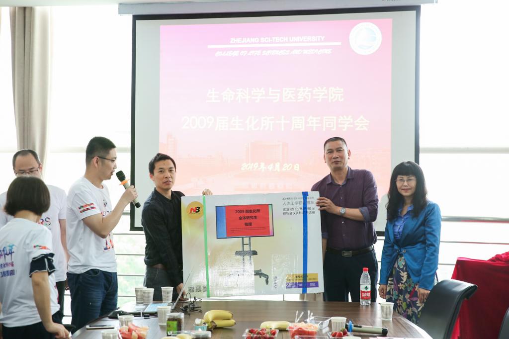 会上,学院2009届生化所研究生校友集体向学院捐赠了一台触摸屏电视会议一体机,以示对母院的感恩之情。