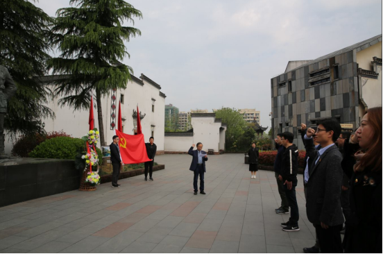 活动伊始,全体教工党员向新四军群雕默哀,并向革命先辈敬献花篮及挽联,祭奠革命先烈。默哀完毕,在学院党委书记祝成炎的领誓下,全体党员用铿锵有力的入党誓词与革命先烈进行一场跨越时空的“对话”。随后,全体党员在馆方讲解员的带领下参观了岩寺新四军军部旧址纪念馆,馆内陈列的一件件革命文物和一块块红色文化展板,重现了以陈毅元帅为首的新四军战士在徽州岩寺集结、生活和战斗革命的峥嵘岁月。新四军在岩寺集中整编,发展壮大了革命队伍,提高了部队战斗力,推动了皖南地区的抗日救亡运动,被毛泽东主席称之为“华中人民的长城”,陈毅元帅称其为“铁的新四军”。
