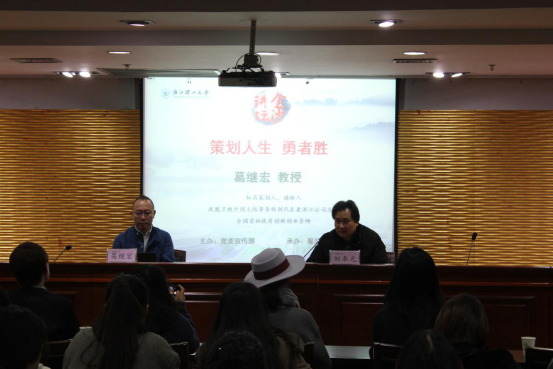 葛继宏以“策划人生,勇者胜”为讲座主题,通过向在座的师生分享自己创立并主持《名人热线》和《名人名家》栏目以及策划第三届浙江电视博览会颁奖仪式等栏目和大型活动的具体案例,述说了自己20多年来在电视制作行业的从业经历和心得体会,向在座的师生展示了积极策划对于成功的重要性。