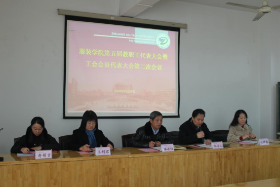 12月28日,服装学院第五届第二次教职工代表大会暨工会会员代表大会在19号楼531会议室举行。院党委书记朱小行、院长邹奉元、副院长王利君、院党委副书记寿萌吉、院工会主席徐麟健及学院全体教职工出席了会议,会议由王利君主持。