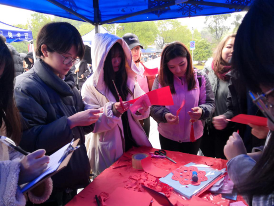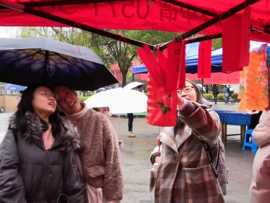 服装学院党建委员会、团委、学生会、社区管理委员会、社团管理委员会、研究生会和就业与创业协会都提前摆好了摊位准备好了活动的道具。精心设计的游戏环节吸引了不少师生围观和参与其中,虽然天下着小雨,但丝毫没有减退现场热烈的气氛。
