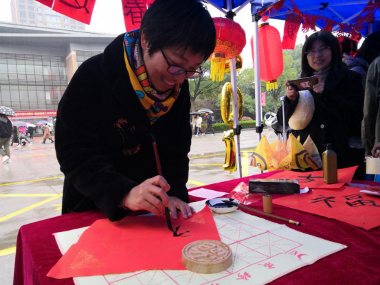 整场活动充满了浓郁的节日氛围,灯谜正反说、投壶、金曲回音、剪窗花、写福字等具有中华传统文化韵味并结合现代生活语境设计的游戏,使我国古典传统文化焕发出新时代时尚特征。现场参与的学生表示:有看的、有吃的、还有玩的,传统文化、红色文化和时尚文化的混搭,这样的体验很独特。
