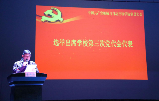 12月12日下午,机控学院在校大剧院召开党员大会,选举出席学校第三次党代会代表。学院党委书记潘海鹏,院长兼副书记陈本永、副书记苏丽辉,副院长、党委委员俞高红、胡明、鲁玉军,党委委员吴震宇以及各师生党员参加会议。会议由潘海鹏主持。