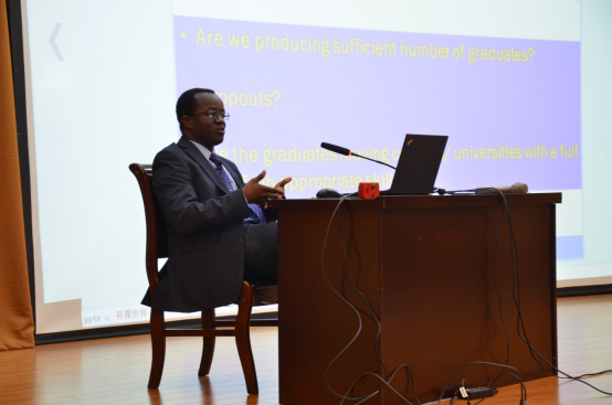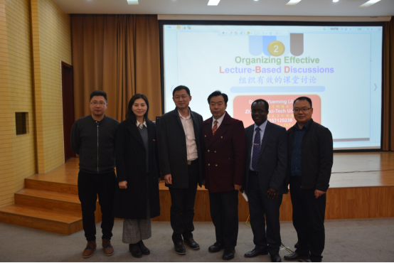 11月30日上午,我校教师教学发展中心主任郭江峰教授从推进全英文授课师资培训的政策、培训模式和成效等方面介绍了我校开展全英文授课师资培训的情况;潘月明教授介绍了我校10期全英文授课班的培训内容和具体做法;中心外教Gladson Chikwa博士则结合自身的工作经历,介绍了英国高校在促进教与学方面的最新进展。下午,潘月明教授从理论层面介绍了如何组织有效的课堂讨论,Chikwa博士从实践层面以互动形式介绍了如何实施课堂讨论以及可促进课堂讨论的工具和技巧。