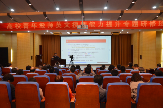 本次专题研修班旨在教授有效提高全英文教学水平的方法,加快学科知识、教学理念和授课方式与国际接轨,提高教师全英文授课能力。据悉,参加此次现场培训的教师有100余人,在线培训的教师有200余人。