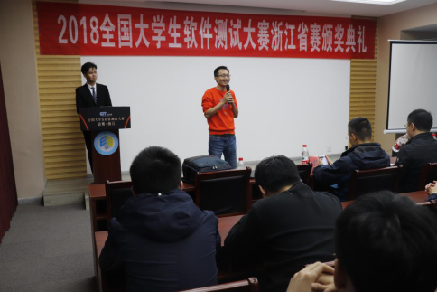 11月3日-4日,2018全国大学生软件测试大赛浙江省赛区决赛在我校信息学院10号楼414举行,共有来自7所高校的选手参加了此次竞赛。南京大学软件学院教授、博导,慕测平台创始人,全国大学生软件测试大赛创办人陈振宇,我校教务处副处长蒋科坚,信息学院党委书记苏志俭,数字媒体技术系主任舒挺,全国大学生软件测试大赛浙江省省赛负责人孙麒出席了颁奖仪式。