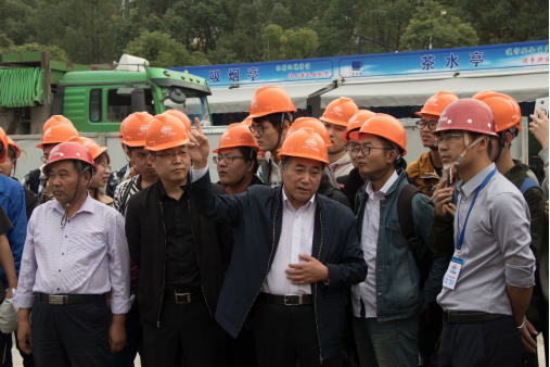 11月4日,建筑工程学院组织土木工程专业的80余名研、本学生参观了中铁十六局杭州地铁SC8-2标在下沙的工地,现场观摩并学习了建基建设集团的双轮铣(SMC工艺)地连墙施工过程。中铁十六局项目经理郑中刚、项目党支部书记寇向南,建基集团创建人、建工院兼职教授沈国勤及董事长沈飞、总经理杭旭亚,学院副院长俞峰、党委副书记韩晶晶参加了本次的交流学习。交流学习分三步骤进行。