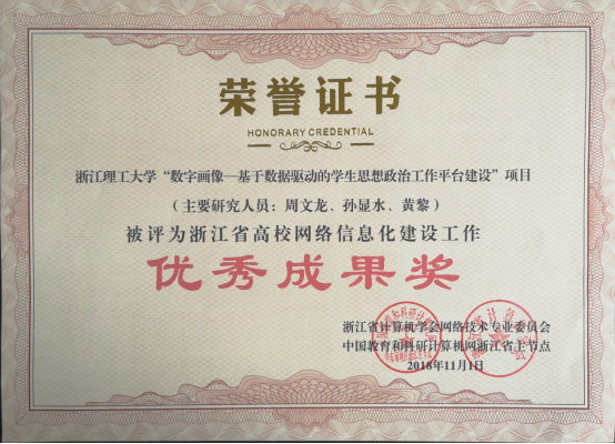 11月1日至2日,中国教育和科研计算机网浙江省主节点第十八次学术年会、浙江省计算机学会网络技术专业委员会第十三次技术研讨会以及浙江省高教学会教育技术专委会2018年年会在杭州顺利召开,来自全省几十所高校的近200多名代表参加会议。我校荣获浙江省高校网络信息化建设工作先进单位,选送的“数字画像--基于数据驱动的学生思想政治工作平台建设”和“基于校园一卡通构建智慧校园生态圈”两个项目荣获浙江省高校网络信息化建设工作优秀成果奖,孙显水同志被评为浙江省高校网络信息化建设工作先进个人,并受邀以“数字画像--基于数据驱动的学生思想政治工作平台建设”为题在大会上作主题报告。