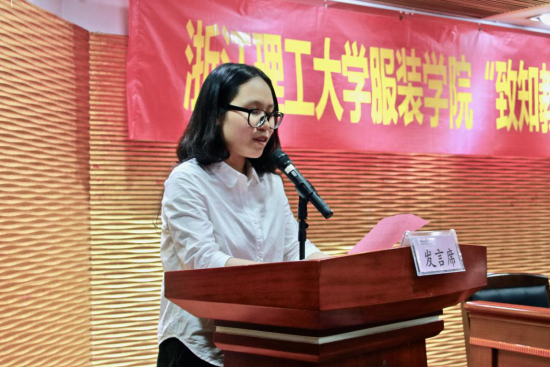 10月24日下午,服装学院致知奖学金颁奖仪式在我校行政楼一楼报告厅举行。参加仪式的嘉宾有杭州爱唯服饰有限公司副总经理钟德鸣,杭州爱唯服饰有限公司品牌总监刘仙君,我校党委学工部部长胡琦,研究生院、党委研工部研究生管理处副处长丁宁,服装学院院长邹奉元、副院长胡迅、党委副书记寿萌吉以及其他来自企业的嘉宾和服装学院师生代表出席了颁奖仪式,颁奖仪式由寿萌吉主持。