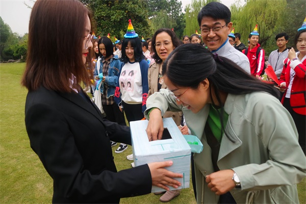 主持人的简短介绍后,程华发表了致辞。她以学校的历史变迁为切入点,鼓励同学们在大学期间勤勉学习,努力掌握各种知识技能,为学校的建设发展做出贡献,并借此提出了三点寄语,希望他们开拓进取、勇于超越、时刻牢记学校的浓厚情谊。紧接着,学生代表余欣进行发言,她首先对学校121周年华诞表示了祝贺,随后讲述了自己对未来四年的期许与规划。同学们也相继在留言墙上写下了对学校的各种祝福。之后在切蛋糕环节中,全场齐唱生日歌,主持人还为抽奖掷骰子选出的幸运儿颁发了生日大礼包。随着全场所有人将写有各自梦想的纸飞机向远方投去,活动圆满落幕。