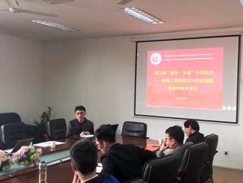 10月19日,建筑工程学院第九期“建言·乐道”沙龙活动暨2019年度国家基金申报分享会在7号楼504室召开。本次活动由副院长俞峰主持,全院30余名教师参加了分享会。