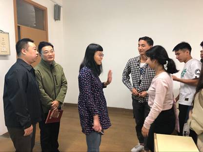 预科班班主任及《国语》任课教师徐立伟介绍了学院组织开学第一课、召开第一次专题班会、选举产生了新一届班委等情况,并就他如何在具体授课中坚持立德树人,将民族团结、“五个认同”、“三个离不开”融入课堂中的教学理念与步骤进行了详细说明。盛清对史量才新闻与传播学院及徐老师大量而细致的工作表示了感谢,结合自身多年的教学经验,对如何提高课堂效率、提高学生的课堂参与度提出了建议,鼓励徐老师结合少数民族预科班教学工作,积极进行总结思考,开展教学改革与研究,创新少数民族预科班教育教学管理形式。
