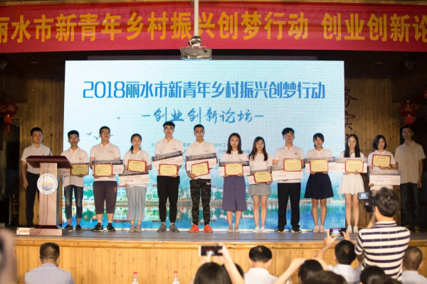 总结分享暨颁奖典礼在丽水市大港头镇文化礼堂举行。在场领导为获得先进个人、先进团队的代表颁发荣誉证书。丽水团市委副书记孔金峰在讲话中表示,丽水市将继续加大对实习、实践大学生的保障力度与鼓励措施。