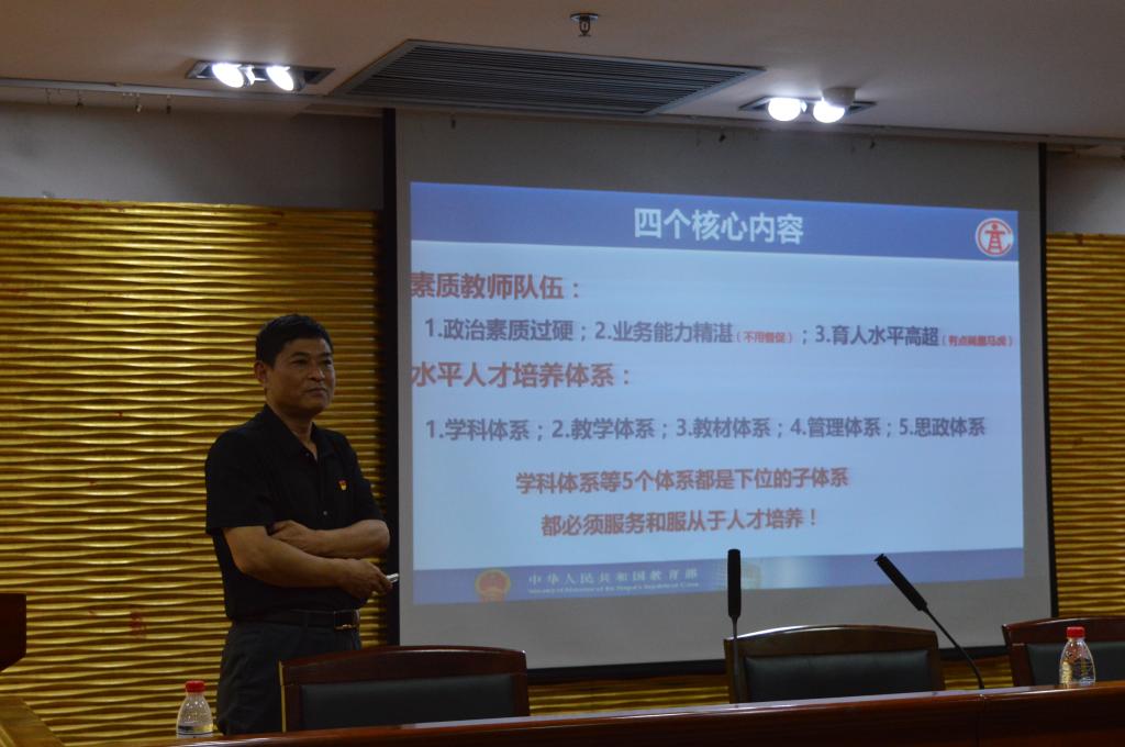 本次大会的主要内容为庆祝中国共产党成立97周年暨“七一”表彰大会,学院党委理论学习中心组扩大会议暨“学习新思想 千万师生同上一堂课”活动,共七个议程。大会开始,全体起立,奏唱国歌。潘海鹏书记带领全体党员同志重温入党誓词。俞高红同志宣读学院优秀党支部、优秀共产党员和优秀支部书记名单,学院领导为各获奖支部与党员颁发荣誉证书。随后,优秀党员代表上台发言。机械工程实验教学中心党支部的优秀教工党员马善红结合自身工作,讲述教工党员如何为人师表、积极奉献;控制工程研究生党支部书记赵梦恩分享了自己研究生阶段的支教与工作经历,并呼吁全体党员勿忘初心。之后,学院学工办主任方水明对我校2018年度教职工政治理论学习的有关安排进行解读。最后一项议程是“学习新思想 千万师生同上一堂课”活动,由学院党委书记上主题党课。潘书记以《学深悟透习近平教育思想 努力写好高等教育“奋进之笔”》为主题,向各位同志讲解了新时代高等教育的主要任务与要求,分享个人学习心得与感悟,并鼓励教师党员以身作则,落实好立德树人这一根本任务。这生动的一课也为党员教师们明确了目标、理顺了思路、振奋了精神。最后,会议在阵阵掌声中完满结束。