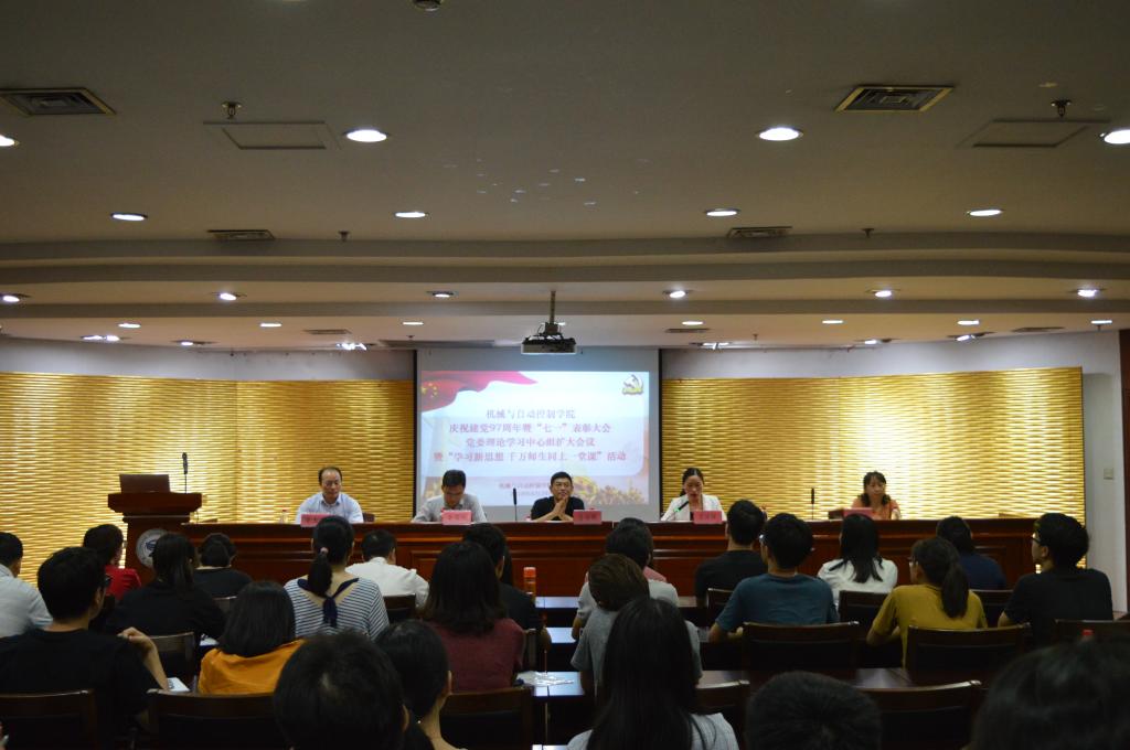 6月29日下午,机械与自动控制学院庆祝建党97周年大会在行政楼一楼报告厅顺利召开。出席大会的领导有学院党委书记潘海鹏,副书记苏丽辉,学院副院长、党委委员俞高红,副院长、党委委员胡明,副院长、党委委员鲁玉军。与会人员还有学院党委理论学习中心组成员、各党支部书记、副书记、获奖人员以及党员代表等。大会由苏丽辉主持。