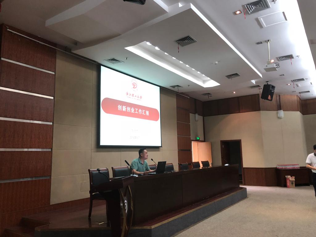 最后,在行政楼二楼报告厅,启新学院、创业学院副院长陈德虎为研修班作了“tyc33455cc太阳集团成网官方入口创新创业工作总结展示”的报告。对我校办学传统、创新创业教育工作的发展历程做了介绍,并从教育教学体系、培育训练体系和实战孵化体系三方面详细介绍了了我校创新创业工作和取得的成果,重点就专创融合、科创融合和产创融合的我校创新创业工作特色进行了阐释。
