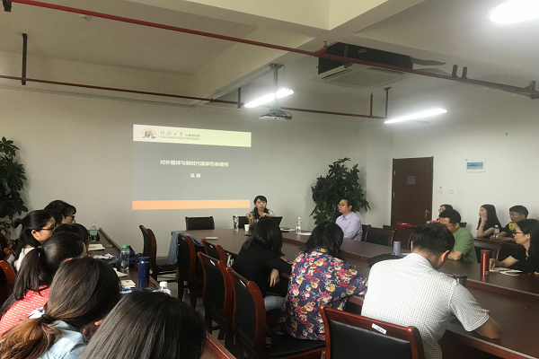 6月5日下午,同济大学特聘教授,博士生导师,外语学院院长吴赟教授在25号楼612为外国语学院师生做了题为“对外翻译与新时代国家形象建构”的学术讲座。本次讲座由学院副院长文炳教授主持,学院所有在校的MTI研究生聆听了本次讲座;此外,王爱琴、焦俊峰、李思龙、黄向辉、施慧敏、朱佳等MTI导师也参加了本次讲座。