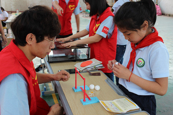 据悉,理学院青少年科普教育基地积极与地方中小学开展合作,通过流通科技馆等形式将特色科普资源送到中小学生身边,让他们开阔科学视野,并注重体验式科普教育,通过动手实验、亲手操作、游戏互动等方式,激发中小学生学科学、爱科学、用科学的兴趣。