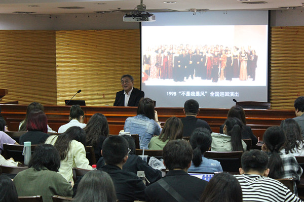 王新元教授以“敢为天下先”为主题,从自己多年来策划并承担大型服装秀经历、从事书法创作和文字研究的经历以及自己对中西方文化的研究和解读三个方面向在座师生演绎了一场生动形象、富有气势的讲座。王新元鼓励在座师生要敢于创新、勇于突破,无论是做研究还是做服装秀策划都应该勇敢的尝试前人所未涉及的领域或是未曾表达过的创意。此外他也从对中西文化的差异研究中谈到了自己体会:中国的服装要走向世界,首先要让中华的文化走向世界,只有让世界深刻的感受到中华文明的伟大和精妙,逐渐接纳、认同甚至喜爱中华的传统,这时候我们设计的服饰作品才会真正在国际获得尊重。