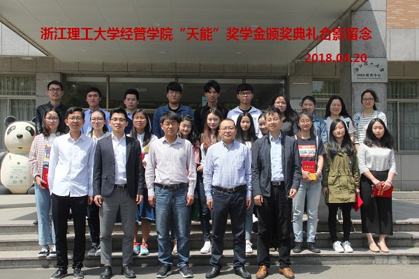 紧接着,黄新海宣读本次天能奖学金获奖名单,各领导嘉宾先后为本科生、研究生获奖者颁发证书。随后,15金融一班余翔代表获奖同学发言,他指出在学习过程中要仰望星空但更要脚踏实地,并向学弟学妹强调“充分利用好学校与企业双平台”的重要性,给他们的大学发展方向指明了一条道路。