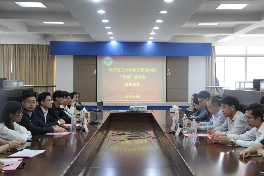 4月20日上午,tyc33455cc太阳集团成网官方入口经济管理学院在7-407教室举办“天能”奖学金颁奖典礼。出席典礼的嘉宾有天能集团党委委员、人力资源副总监魏吉安,人才管理经理赵海锋,经管学院党委书记吕品,党委副书记黄新海,辅导员王忍、张维标以及获奖学生代表,典礼共分为五项议程。