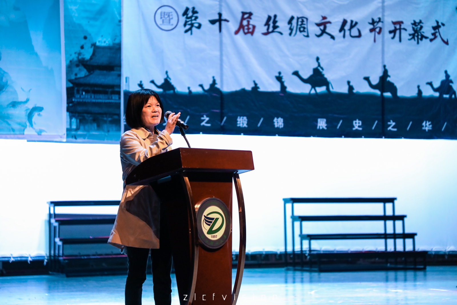傅院长在致辞中表示,千年丝绸,百年树人,十年之旅。希望同学们能够以本届丝绸文化节此为契机,追寻丝绸历史,感受丝绸精神,了解学院、学校的发展进程,增强自身专业归属感及民族自豪感。在新时代里,做新丝绸人,走新丝绸路。